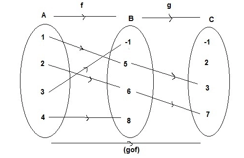 Jika f dan q merupakan dua buah fungsi sedemikian sehingga f : A → B dan g : B → C, maka komposisi fungsi gof : A → C ditentukan oleh rumus