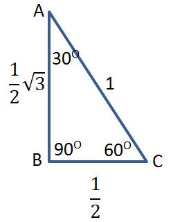 Jadi panjang BC = 1/2 dan AB = ½ V3  dan AC = 1