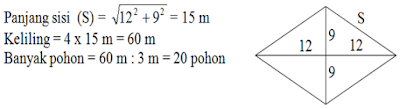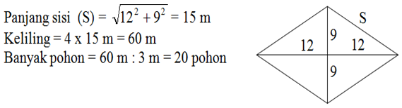 9.  Kebun berbentuk belahketupat, panjang kedua diagonalnya 24 m dan 18 m.