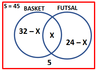 24 anak gemar futsal, dan 5 anak tidak gemar basket maupun futsal.