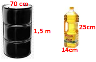 1.  Sebuah drum berbentuk tabung dengan jari-jari 70 cm dan tinggi 1,5 meter penuh