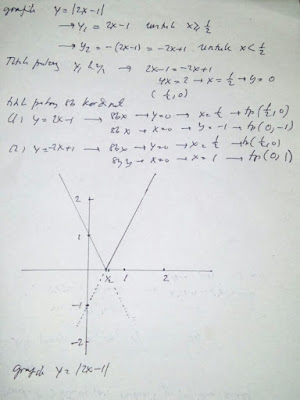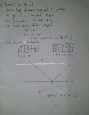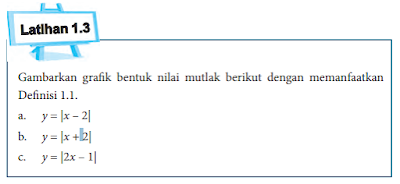 Gambarkan grafik bentuk nilai mutlak berikut dengan memanfaatkan definisi 1.1 a)y=|x-2|. b)y=|x+2|, c)y=|2x-1|