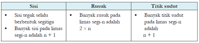 c.  Limas mempunyai rusuk tegak dan rusuk yang tidak tegak.