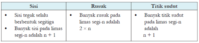 3.  Sebutkan sifat-sifat bangun limas berikut! Seperti bentuk sisi, rusuk,