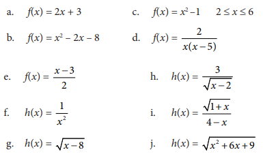 Tentukanlah daerah asal dan daerah hasil dari fungsi-fungsi tersebut.