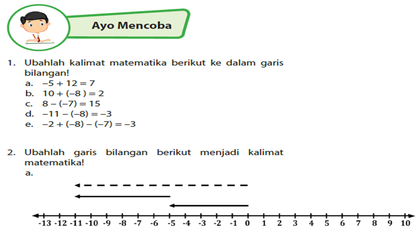 1. Ubahlah kalimat matematika berikut ke dalam garis bilangan!