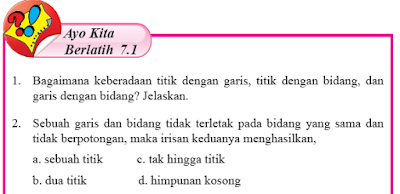 1. Bagaimana keberadaan titik dengan garis, titik dengan bidang, dan
