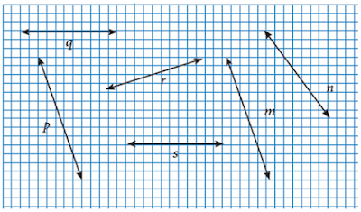 a. Garis yang saling sejajar; garis p dengan m dan garis s dengan q
