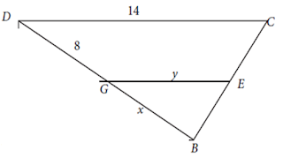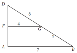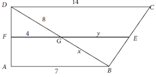 dengan sisi AB. Jika AB = 7, DC = 14, DG = 8, FG = 4, GB = x , dan