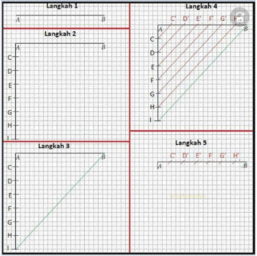 4) Buatlah garis-garis sejajar dengan ruas garis IB yang garis-garis tersebut