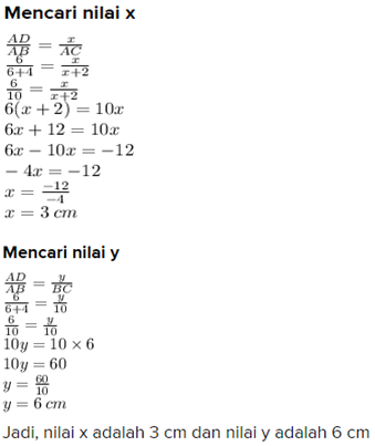 ∴Jadi nilai x adalah 5 cm