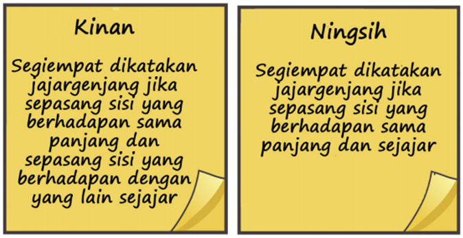 7. Kinan dan Ningsih mendeskripsikan definisi segiempat yang