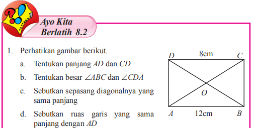 Berdasarkan sifat persegi panjang diatas bahwa ada sepasang diagonal yang