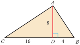 8. Perhatikan segitiga ABC berikut ini. BD = 4cm, AD = 8cm, dan CD = 16cm.