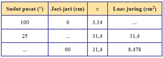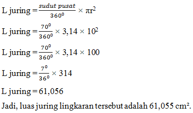3. Tentukan luas juring lingkaran yang diketahui sudut pusatnya 700dan