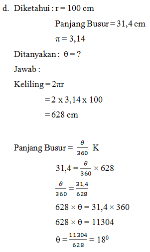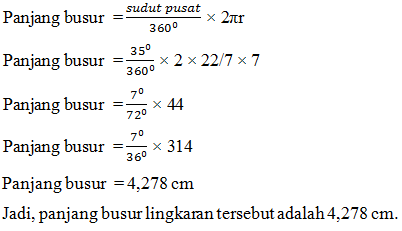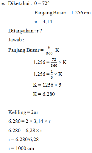4. Tentukan panjang busur lingkaran yang sudut pusatnya 350 dan