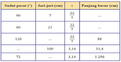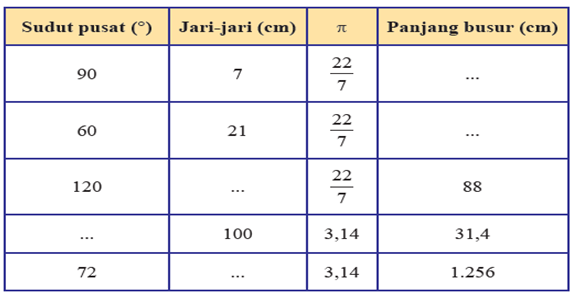 5. Lingkaran A memiliki jari-jari 14 cm. Tentukan sudut pusat dan jari-jari suatu