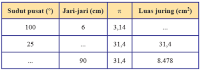 Sudut pusat dan jari-jari juring lingkaran yang memiliki luas yang sama