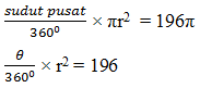 Jadi θ = 90⁰dan r = 28 cm
