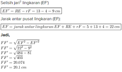 3. Diketahui jarak antara lingkaran E dan F adalah 5 cm.