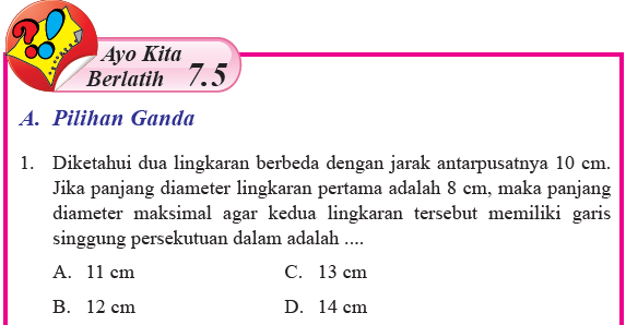 1. Diketahui dua lingkaran berbeda dengan jarak antar pusatnya 10 cm.