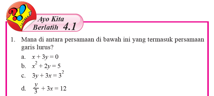 Jadi persamaan x2 + 2y = 5 bukan persamaan garis lurus
