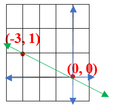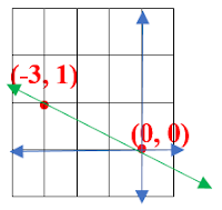 Jika titik (0, 0) dan (-3, 1) dihubungkan maka terbentuklah garis lurus dari persamaan