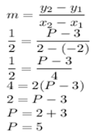5. Garis yang melalui titik A(-2, 3) Dan B(2, P) memiliki kemiringan 1/2 Tentukan nilai P