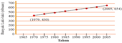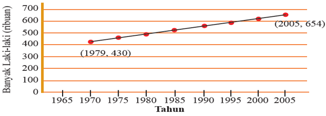 a. Tentukan kemiringan garis, gunakan titik (1970, 430) dan titik (2005, 654)