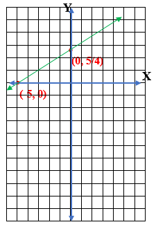 x1 = 0 , y1 = 5 dan x2 = -5 , y2 = 0