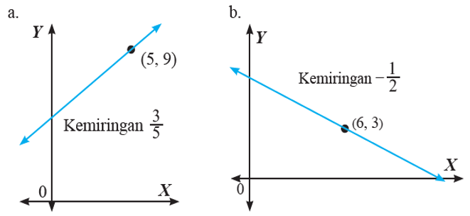Persamaan garis yang melalui satu titik (x₁, y₁) dan kemiringan m adalah y – y₁= m (x – x₁)