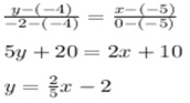 (y – 6) / (-4 – 6) = (x – 2) / (-1 – 2)