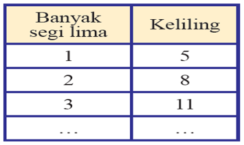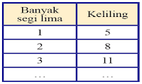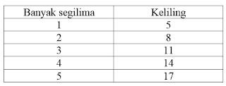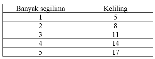 Keliling = 3n + 2, dengan n adalah banyak segilima.