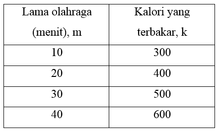 Tentukan persamaan yang menunjukkan hubungan antara lama berolahraga