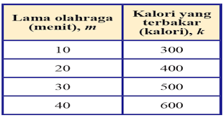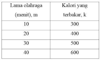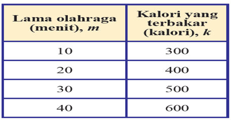 banyaknya kalori yang terbakar adalah y = 10x + 200