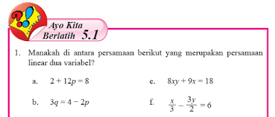 1. Manakah diantara persamaan berikut yang merupakan persamaan linear dua variabel?