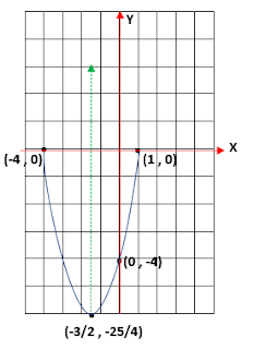 Garis sumbu simetri diperoleh dari x = -b / 2a = -3 / 2 . 1 = -3/2