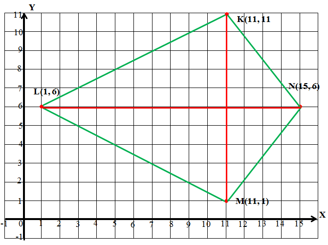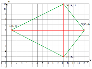 4. Diketahui titik-titik koordinat K(11, 11), L(1, 6), M(11, 1), dan N(15, 6).